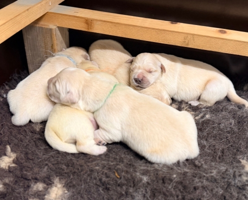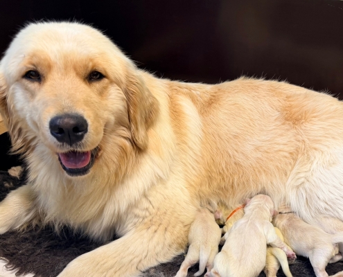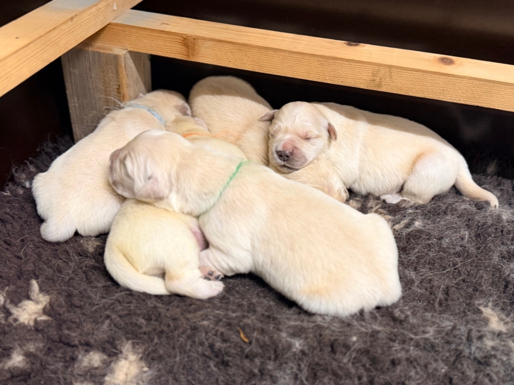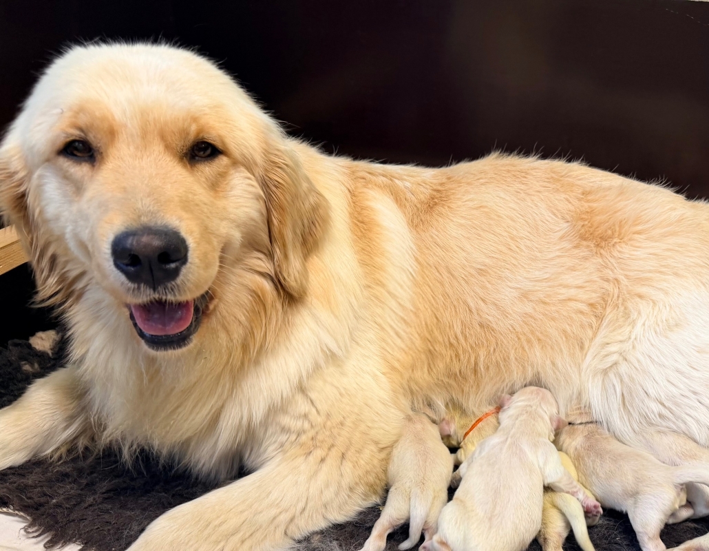 C’est la première portée de Sakura. maman et ses 5 bébés dodus vont bien. Il y a 1 femelle et 4 mâles.