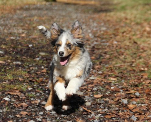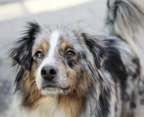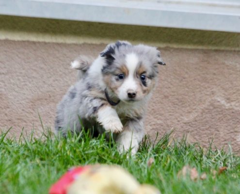 Couleur : bleu merle (porteur rouge), yeux bicolores