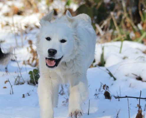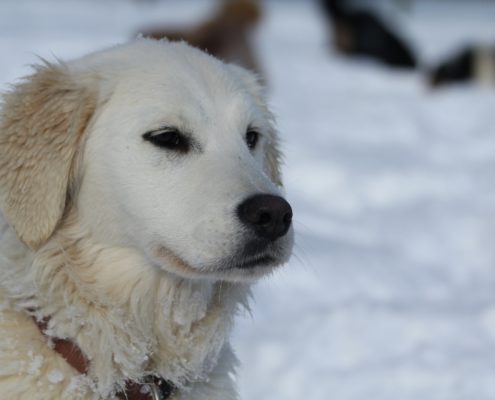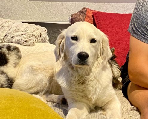 C’est une chienne très affectueuse, et qui s’entend absolument avec tout le monde. Elle est toujours de « bonne humeur » et joyeuse ! Vraiment un amour de Golden !