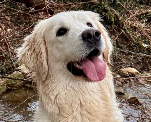 Pikachu a su faire sa place dans notre meute, et ne se laisse pas faire si on lui cherche des embrouilles, elle saura se faire respecter. D’un tempérament vif, c’est une « sportive » qui aime se dépenser, et courir après la balle. Elle est très réceptive à l’éducation, a un excellent rappel .