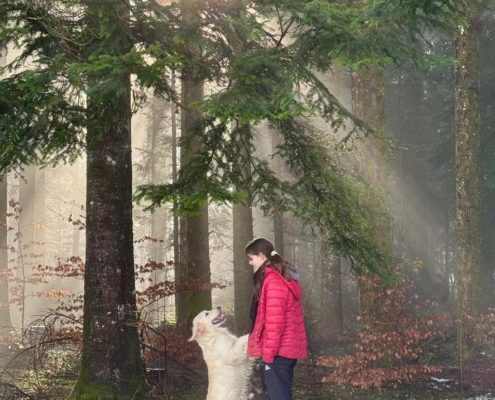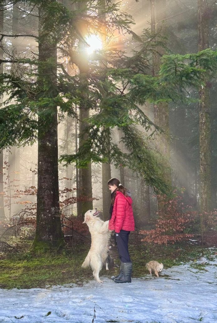 Pikachu a conquis le cœur de ma fille et elles sont très attachées l’une à l’autre. Elle a le privilège de dormir au pied de son lit, en plus de l’accompagner dans ses balades, à pied ou à cheval, ou au bord du lac pour aller nager.