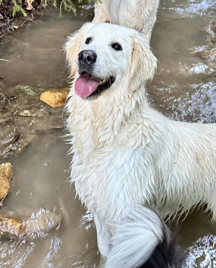 Elle aime enfants, chats, congénères, et va volontiers à la rencontre des inconnus pour quelques caresses.