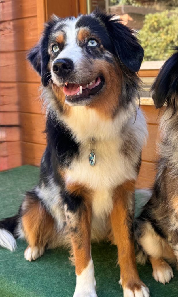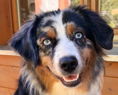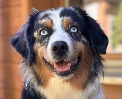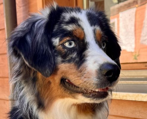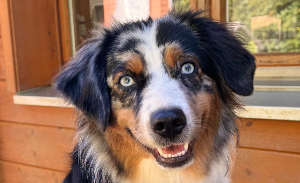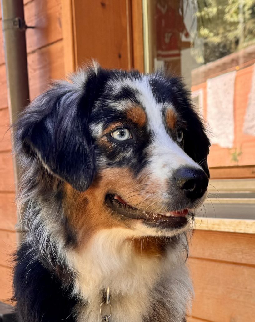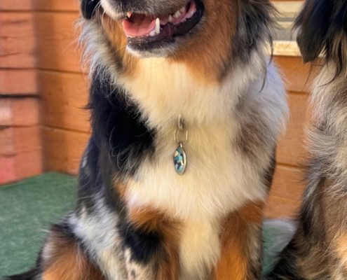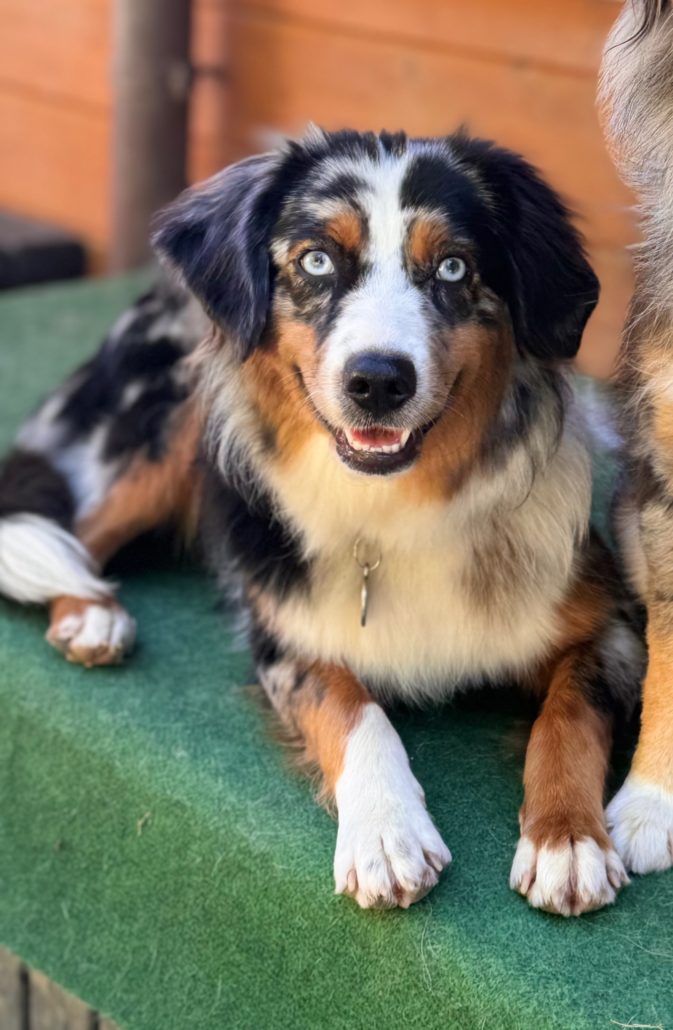Elle vit avec Laura, une de nos gardiennes d’animaux, mais elle est 5 jours par semaine au Domaine des Barussels quand sa maîtresse y travaille. Elle s’entend avec tous, que ce soit humains ou chiens, et accueille les visiteurs avec joie pour des câlins.